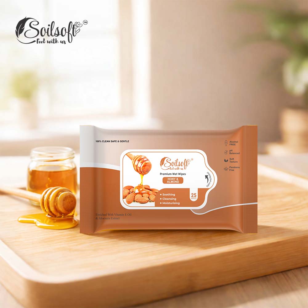 Pamper your skin with the nourishing care of Soilsoft Honey & Almond Premium Wet Wipes, specially designed for gentle yet effective daily cleansing. Infused with the natural goodness of honey and almond, these wipes help remove dirt, sweat, makeup, and impurities while soothing and softening the skin. Their soft texture ensures a smooth and comfortable cleansing experience without irritation.